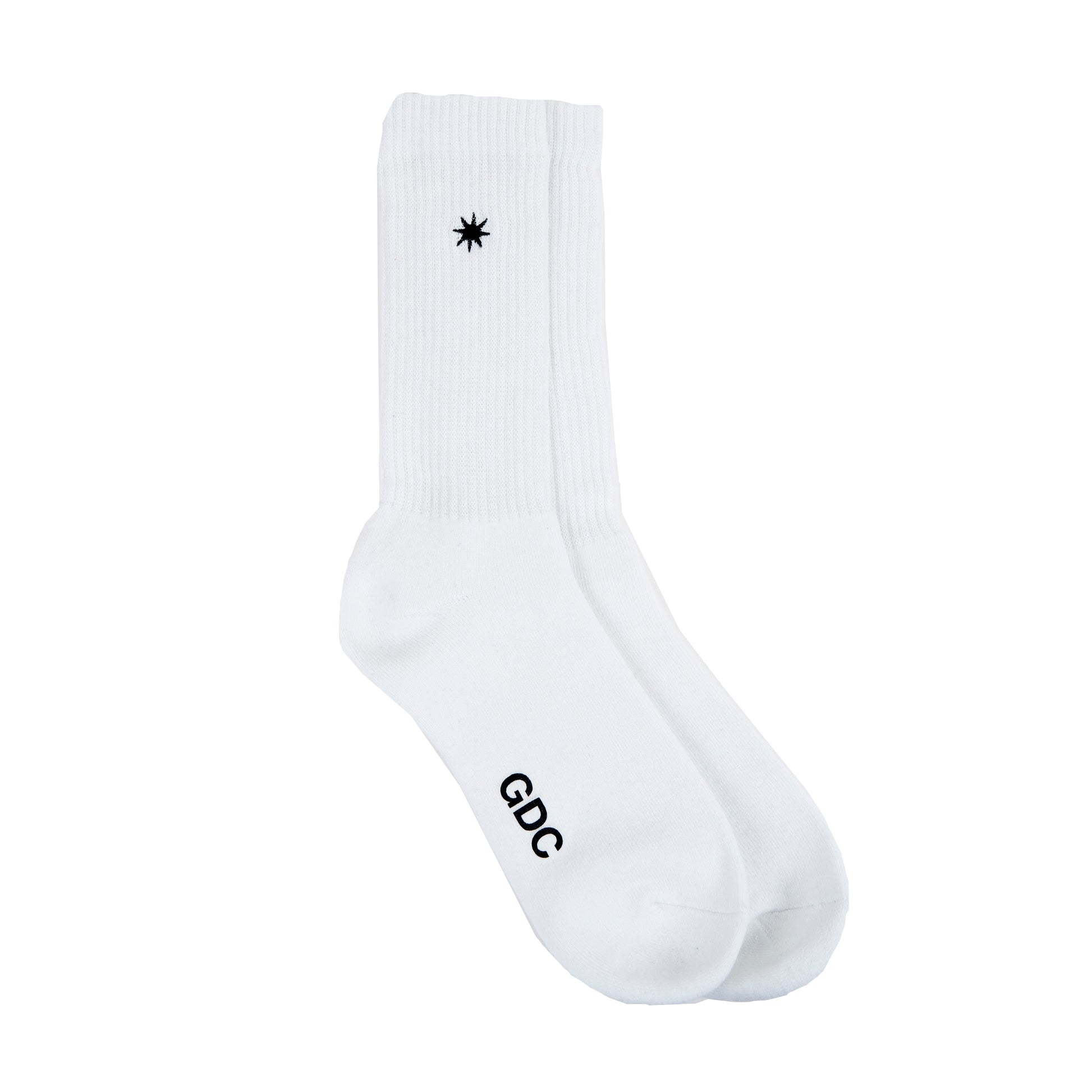 コットン/アクリルの混紡素材を使用したロングソックス 3Pパック。レッグ側面に8芒星のSTAグラフィックを直刺繍、底面はGDCロゴをラバープリントで表現したデザイン。2色1サイズ展開。