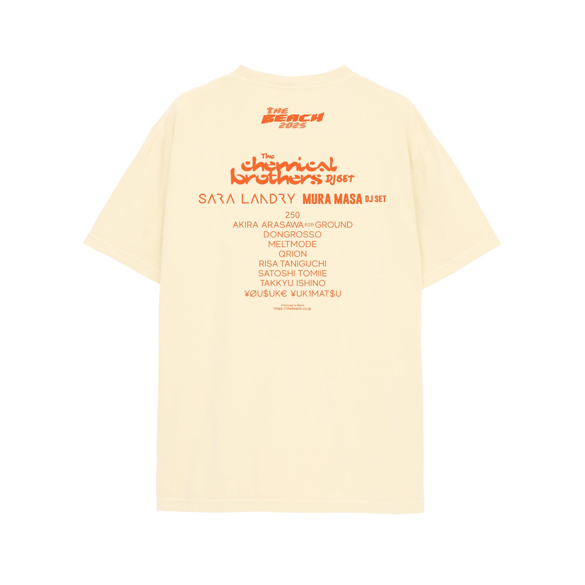 2025年5月31日(土)に初開催予定だった、ダンスミュージックに特化した新たなビーチフェスティバル「THE BEACH 2025」。あいにくの天候により開催は見送られたものの、先行して発売されたGDCとのコラボレーションアイテムのTシャツは大きな反響を呼び、発売と同時に瞬く間に完売。そしてこのたび、豪華アーティスト名がプリントされ幻となった*Festival Exclusive*(ライブ会場限定)Tシャツの発売が決定。ドライタッチなコットン天竺素材を使用したショートスリーブTシャツで、フロントは胸元にGDCロゴ・8芒星STA・「THE BEACH 2025」のロゴを、視線を引きつけるビビッドなカラーリングのラバープリントで表現。バックには、1990年代初頭から実験的かつ革新的なサウンドで世界的な人気を誇るThe Chemical Brothers(ケミカル・ブラザーズ)をはじめ、日本初上陸となるハードテクノ界の絶対女王Sara Landry(サラ・ランドリー)、日本のテクノシーンを牽引する石野卓球、型破りなスタイルで世界的な注目を集める¥ØU$UK€ ¥UK1MAT$U(行松陽介)など、異なる世代と音楽性を持つトップDJたちのアーティストネーム入り。GDCと豪華アーティストの共演による限定アイテムは完売必至。
