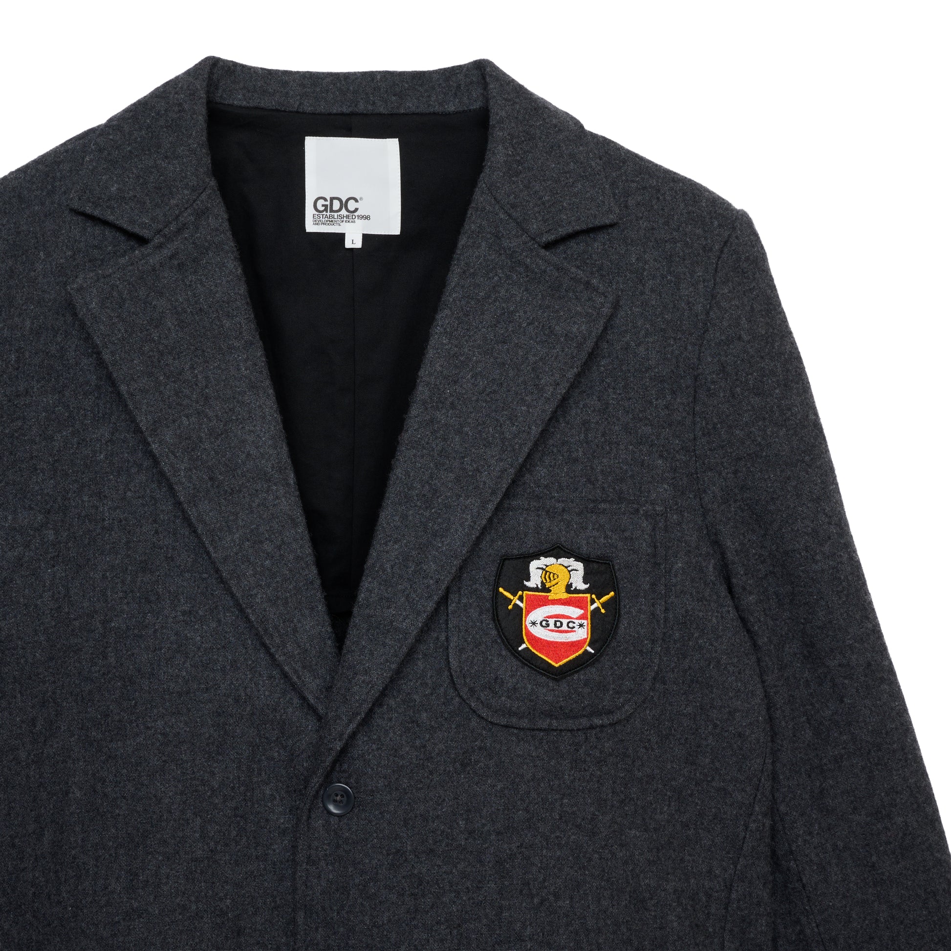 GDCオリジナルの刺繍パッチを左胸に配したジャケットコレクション。刺繍には、盾型をベースにしたクレスト(紋章)モチーフのエンブレムを採用。中央にはGマークとGDCの文字を配し、ブランドのアイデンティティを象徴する意匠として存在感を放ちます。