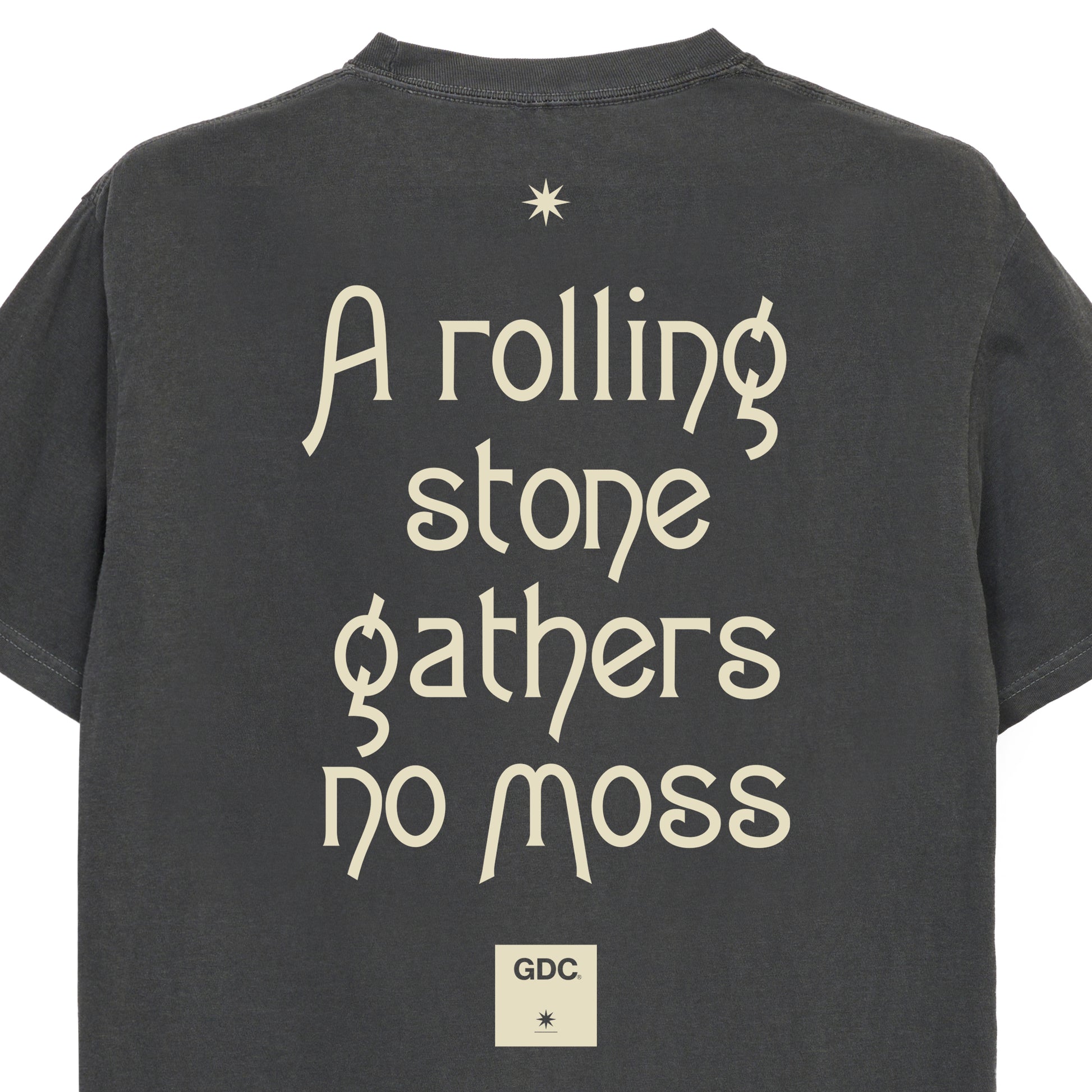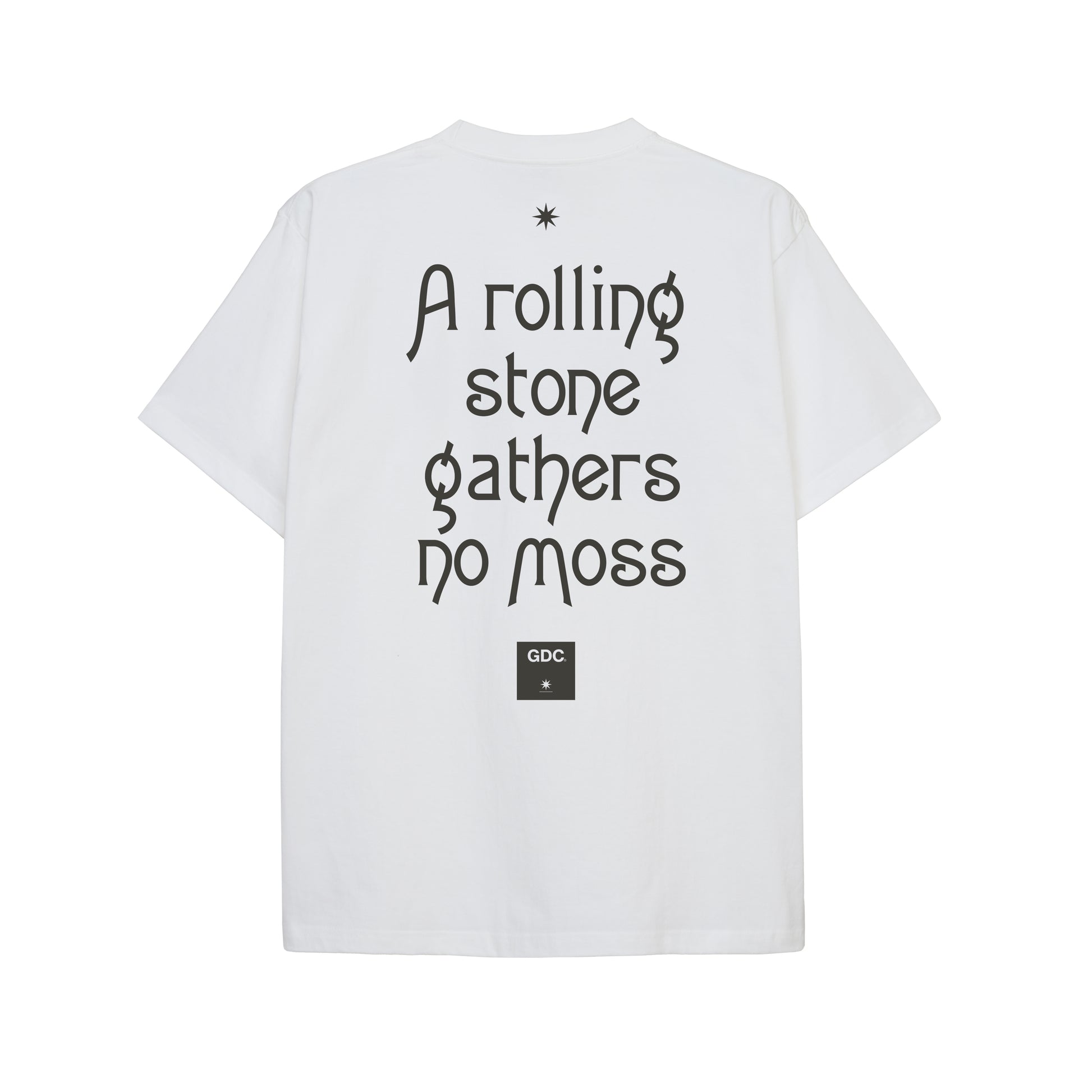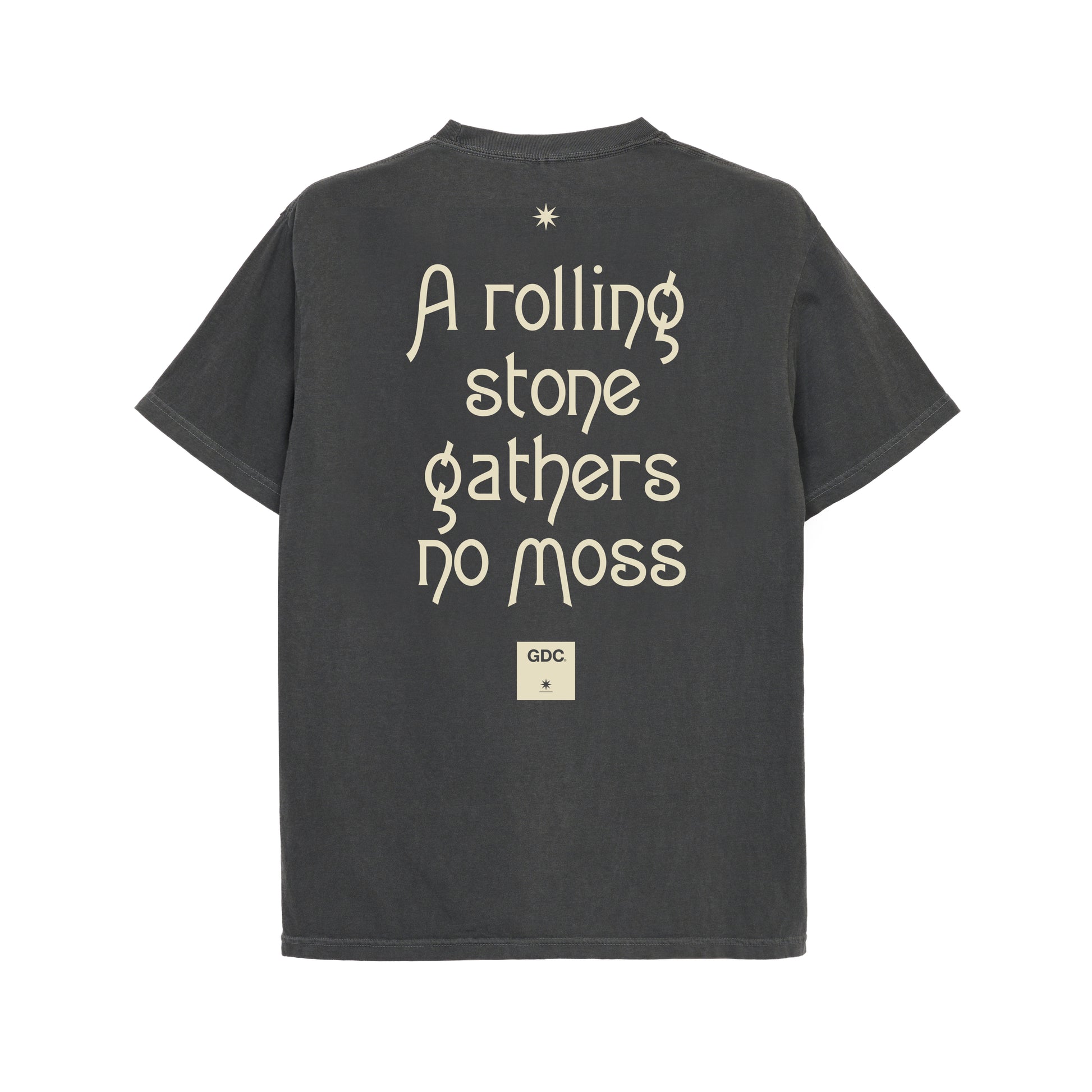 フロントには、ブランドを象徴する8芒星 “STA”モチーフに、90’sオルタナティブのアートワークを思わせる歪んだレタリングを組み合わせた新規デザイン。背面には、GDCが掲げる A Rolling Stone Gathers No Mossのタイポグラフィを配置。ボディは、リングスパンを使用したソフトで程よい厚みの生地が特徴。肌に寄り添う柔らかな着心地と、くすんだヴィンテージカラーが存在感を放つ。色合いと着心地を追求し、ウォッシュ加工を重ねることで生まれる独自のフェード感が、着始めから馴染む褪色感と自然なドライタッチを実現している。着るほどに生まれるヴィンテージ調の色落ちと、ボディの経年変化は、自分だけの一枚へと育つ楽しみも兼ね備える。