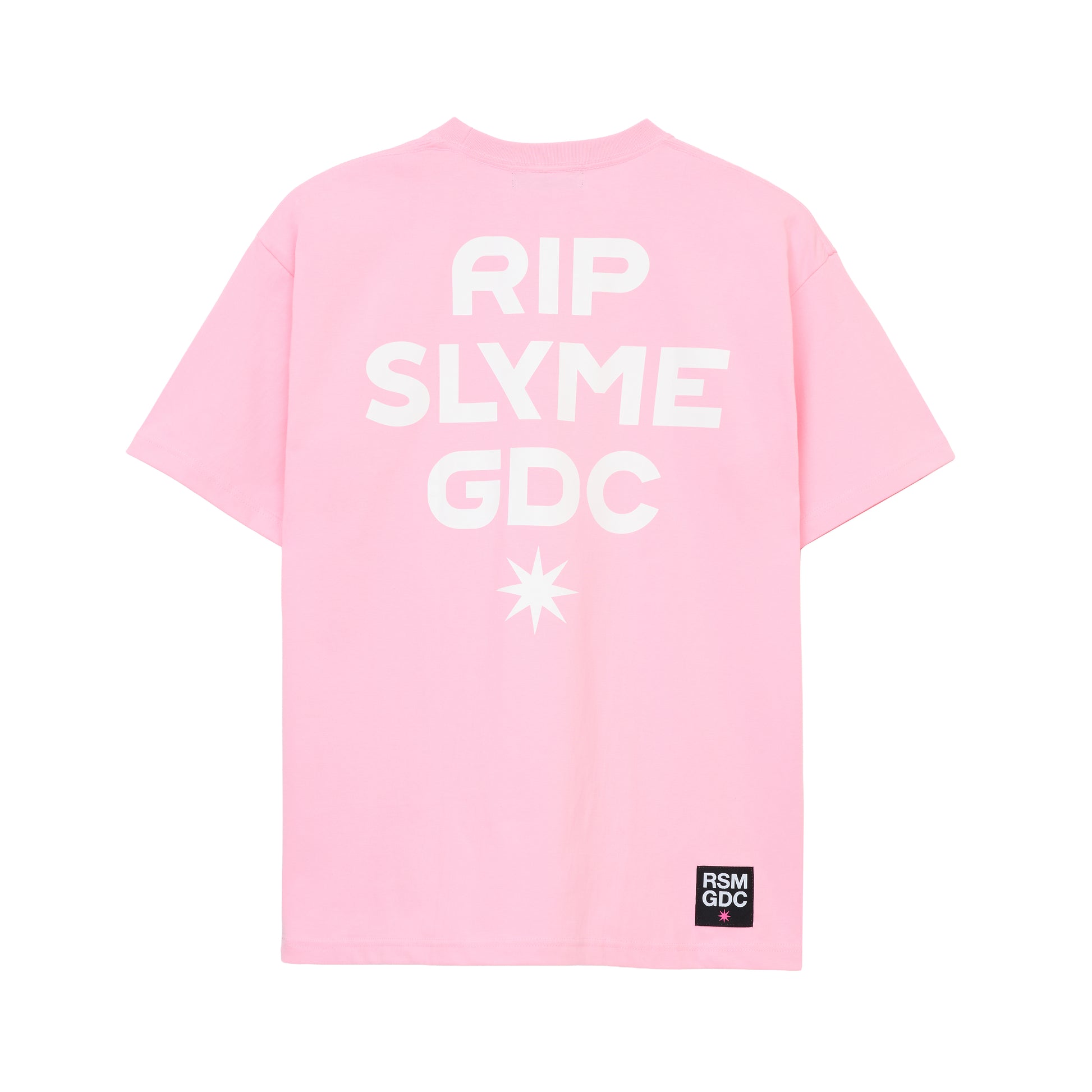 復活した〈RIP SLYME〉のロゴとリンクする〈GDC〉ロゴを採用し、コラボレーションならではの一体感を表現。胸元にはGDCの8芒星とRIP SLYMEの頭文字“RS”をモチーフにしたエンブレムデザインをオン。ベーシックなホワイトとブラックに、軽やかなピンクを加えた3色展開で、ドライタッチなコットン天竺素材を使用。大胆ながらもまとまりのあるデザインで、RIP SLYMEらしいポップさとGDCらしいストリートムードが共鳴する一枚です。