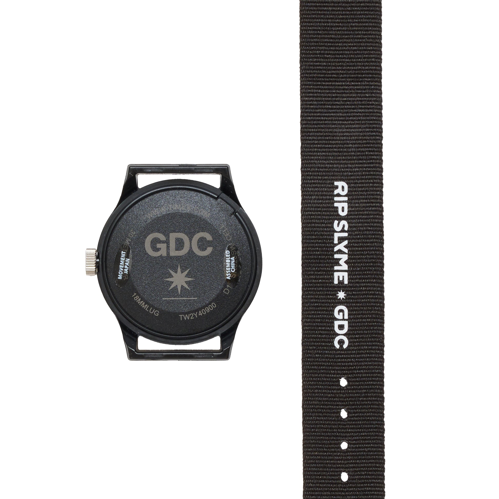 80年代に発売されたミリタリーウォッチ“Camper”をベースに、〈TIMEX〉×〈RIP SLYME〉×〈GDC〉のトリプルコラボレーションモデル。ストラップ表面には、RIP SLYMEの頭文字“RSM”とGDCロゴを掛け合わせたボックスロゴ総柄デザインを採用し、背面には両ブランドのダブルネームを配置。潔いデザインの中に、思わず目を引く存在感を放つ一本。カラー違いのデジカモ柄を含む3本の交換用ベルトが付属し、気分やスタイルに合わせてアレンジが可能。GDCとRIP SLYME、それぞれの“Re-Start”を刻む、特別なチームアップウォッチです。