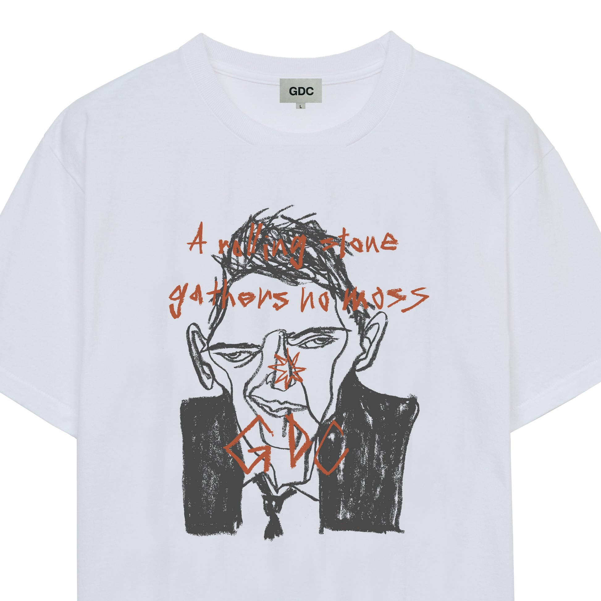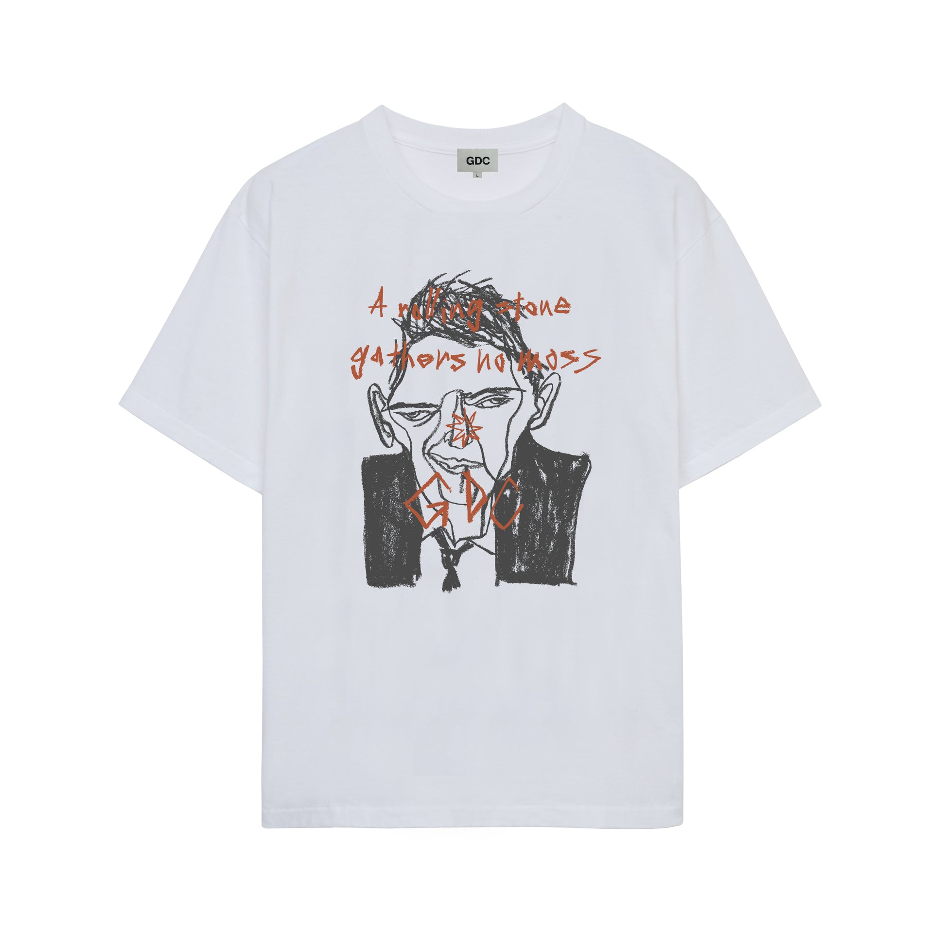 ドライタッチなコットン天竺素材を使用したショートスリーブTシャツで、前面にはディレクター熊谷が敬愛する、銀幕を駆け抜け時代を象徴した伝説的なシネマアイコンのポートレートを大胆にプリント。アーティストTARO氏が描く手描きのタッチや空気感をそのまま活かし、原画のニュアンスを最大限に再現しています。背面の襟下にはGDC 8芒星STAモチーフをあしらいました。