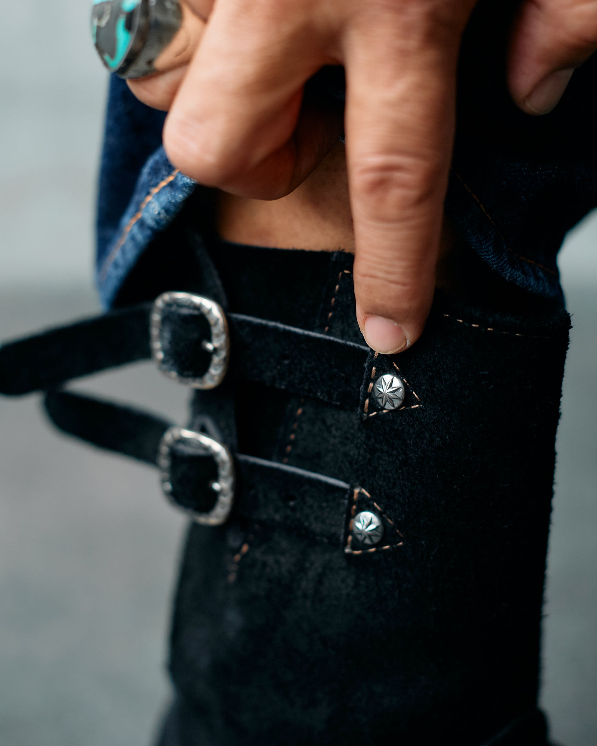 スタイリスト・フォトグラファー・クリエイティブディレクターとして活躍する熊谷隆志が手がけるストリートブランド〈GDC(ジーディーシー)〉より、アメリカンワークブーツの雄〈WESCO(ウエスコ)〉との特別なコラボレーションアイテムが登場。本コラボレーションは、WESCO JAPAN代表・岡本直と、GDCディレクター・熊谷隆志が直接対話を重ねる中で、互いの感性が共鳴し実現しました。本作は、GDCの再始動を象徴するニューコレクションの中でも、とりわけ存在感を放つ一足。WESCOの定番エンジニアブーツ「BOSS」をベースに、互いへの深いリスペクトがあってこそ具現化した、WESCO史においても稀有なエクスクルーシブモデルです。デザイン面では、熊谷隆志が長年傾倒してきたヴィンテージナバホジュエリーから着想を得たSilver 925製バックルを採用。ハンドメイド感のある表情が、ブーツ全体に奥行きを与えています。さらに、GDCの象徴である8芒星STAモチーフのSilver 925製スタッズをベルト部分に打ち込み、コラボレーションならではの存在感を演出。ベルトは上部2インチ、下部1インチと長めに設定され、スタイリングの幅を広げています。アッパーには、足馴染みがよく、履き込むほどに表情を増していくブラックオイルドラフアウトレザーを採用。力強さを感じさせながらも上質な佇まいを備えた素材選びは、WESCOならではのクラフツマンシップを体現しています。堅牢な作りはそのままに、削ぎ落とされたフォルムと快適さを損なわないフィッティングを重ね、力強さと美しさを兼ね備えた仕上がりが特徴です。ラストには、ヒール高がやや高めで自然な傾斜が美しいフォルムを生む「9165」を採用。安定感のある履き心地と快適性を両立しています。アウトソールには〈Vibram #430〉を装備し、武骨な表情を備えながらも、街履きにも適した高い安定感と歩きやすさを実現しました。熊谷自身のライフスタイルに根ざしたファッション性と、WESCOが誇る伝統的なブーツメイキングが交錯することで生まれた本作。